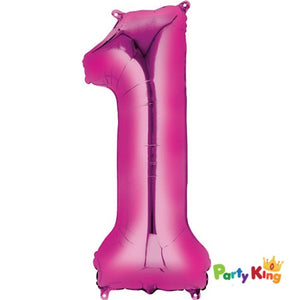 86cm/34" bright pink number "1" foil balloon. Suitable for either air or helium gas.
